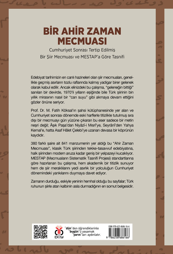 380 farklı şaire ait 841 manzumenin yer aldığı bu “Ahir Zaman Mecmuası”, klasik Türk şiirinden tekke-tasavvuf edebiyatına, halk şiirinden modern aruza kadar geniş bir yelpazeyi kucaklıyor. MESTAP (Mecmuaların Sistematik Tasnifi Projesi) standartlarına göre hazırlanan bu çalışma, hem akademik bir titizlik sunuyor hem de şiir meraklılarını yedi asırlık bir yolculuğun Cumhuriyet dönemindeki yankılarını duymaya davet ediyor.