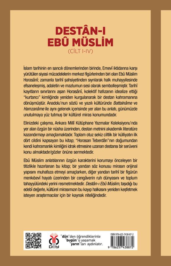 Ebû Müslim anlatılarının özgün karakterini korumayı önceleyen bir titizlikle hazırlanan bu kitap; bir yandan söz konusu mirasın orijinal yapısını muhafaza etmeyi amaçlarken, diğer yandan tarihî bir figürün menkıbevî hayatı üzerinden bir cengâverin ruh dünyasını ve toplum tahayyülündeki yerini resmetmektedir. Destân-ı Ebû Müslim, taşıdığı bu edebî değerle, kültürel mirasımızın bu kayıp halkasını yeniden keşfetmek isteyen araştırmacılar için bir kaynak niteliğindedir.