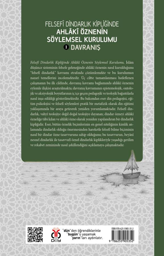 Felsefî Dindarlık Kipliğinde Ahlâkî Öznenin Söylemsel Kurulumu, İslâm düşünce sisteminin felsefe geleneğinde ahlâkî öznenin nasıl kurulduğunu “felsefî dindarlık” kavramı etrafında çözümlemekte ve bu kurulumun nazarî temellerini incelemektedir. Üç ciltte tamamlanması hedeflenen çalışmanın bu ilk cildinde, davranış kavramı bağlamında ahlâkî öznenin eylemle ilişkisi araştırılmakta; davranış kavramının epistemolojik, ontolojik ve aksiyolojik boyutlarının iç içe geçen pedagojik ve teolojik bağıntılarla nasıl inşa edildiği gösterilmektedir. Bu bakımdan eser din pedagojisi, eğitim psikolojisi ve felsefî söylemleri pratik bir metafizik olarak din eğitimi yaklaşımında bir araya getirerek yeniden yorumlamaktadır. Felsefî dindarlık, vahyî teolojiye değil doğal teolojiye dayanan; dindar özneyi ahlâkî özneliğe tâbi kılan ve ahlâkî özne olarak yeniden yapılandıran bir dindarlık kipliğidir. Eser, bütün öznelik biçimlerinin en genel niteliğinin kimlik anlamında dindarlık olduğu önermesinden hareketle felsefî bilme biçiminin nasıl bir dindar özne tasavvuruna sahip olduğunu; bu tasavvurun, beyânî nesnel dindarlık ile tasavvufî öznel dindarlık kiplikleriyle yaşadığı gerilim ve rekabet zemininde nasıl şekillendiğini açıklamaya çalışmaktadır.